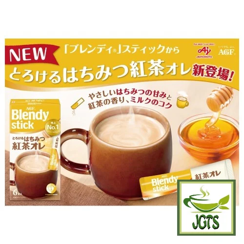 (AGF) Blendy Melty Honey Black Tea Au Lait "sticks" are all-in-one individually wrapped instant tea packages. Just add one "stick" (sachet) to hot or cold water for a delicious cup of Melty Honey Black Tea Au Lait.