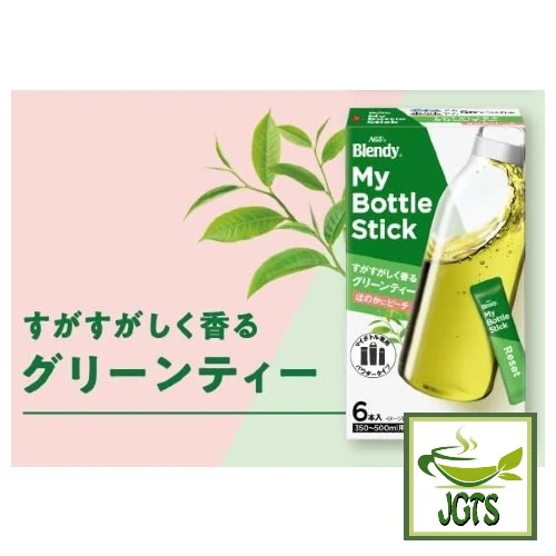 (AGF) Blendy My Bottle Stick Refreshingly Fragrant Green Tea is a box of 6 individually wrapped instant green tea containers. Just add one container to your favorite drink bottle for a delicious Refreshingly Fragrant Green Tea easily and conveniently anytime.
